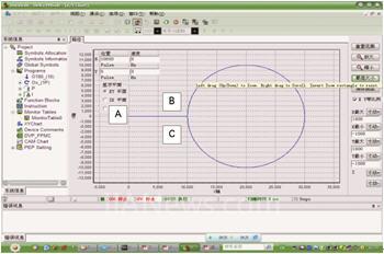 下面是用軟件監(jiān)控,反映實(shí)際走的圖形,反映的是坐標(biāo)位置。從A點(diǎn)出發(fā),到B點(diǎn),然后從B點(diǎn)走個整圓到C點(diǎn),在X軸沒有間隙的情況下,實(shí)際機(jī)械加工B點(diǎn)與C點(diǎn)完全重合,有間隙的情況下,會出現(xiàn)不能封口的現(xiàn)象。