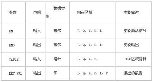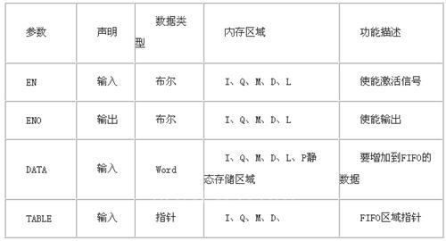 從圖2-1中可以看到,F(xiàn)C85FIFO共有四個參數(shù),分別為EN、ENO、TABLE和RET_VAL,在西門子資料中對其描述如下表2-2: