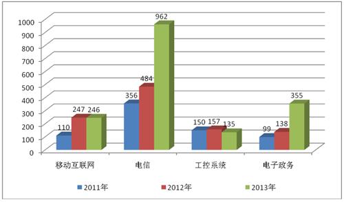 2011—2013年CNVD收錄各行業(yè)信息安全漏洞情況對比