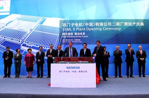 2014年5月23日,西門子(中國)有限公司在江蘇省揚州(儀征)汽車工業(yè)園舉辦西門子電機(中國)有限公司新基地投產(chǎn)慶典。新基地建筑面積8.8萬平方米,年產(chǎn)能將達100萬臺,為西門子在華最大的低壓高效電機生產(chǎn)和研發(fā)基地。隨著西門子在低壓高效電機領域的產(chǎn)品產(chǎn)能、品質和服務水平進一步提升,新基地也會進一步加強西門子全集成驅動系統(tǒng)的市場地位。