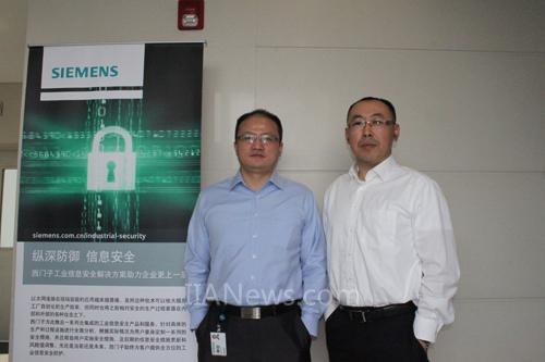 唐文,西門子中國研究院信息安全部核心技術(shù)專家;右,王濤,西門子自動化系統(tǒng)部產(chǎn)品管理部部門經(jīng)理