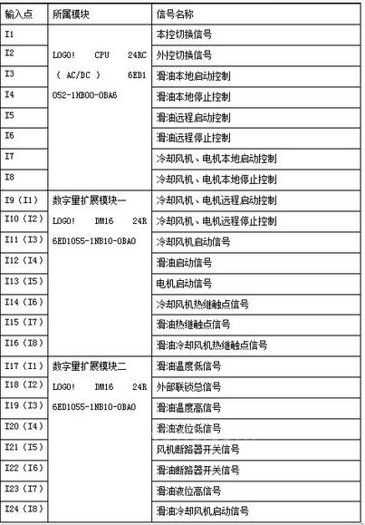 據(jù)據(jù)方案需求和原理設(shè)計(jì),對(duì)LOGO! 控制器的I/O點(diǎn)分配見表1和表2。