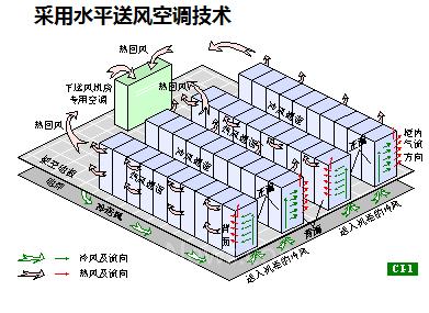 由于水平送風(fēng)空調(diào)安裝在機(jī)柜旁邊,就近送風(fēng)和制冷,解決地板下送風(fēng)風(fēng)阻導(dǎo)致的局部熱點(diǎn)問題;