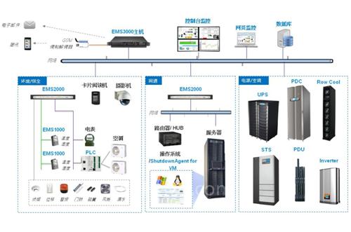 主要監(jiān)控架構(gòu)為EMS3000, 藉由以太網(wǎng)絡(luò)(ethernet)架構(gòu)SNMP協(xié)議整合臺(tái)達(dá)設(shè)備及監(jiān)視, 消防等外部組件, 及監(jiān)視具備IPMI協(xié)議內(nèi)部之服務(wù)器之內(nèi)部風(fēng)速及溫度狀態(tài),結(jié)合對(duì)服務(wù)器芯片及燈光控制的管理,實(shí)現(xiàn)虛擬化節(jié)能及照明節(jié)能。