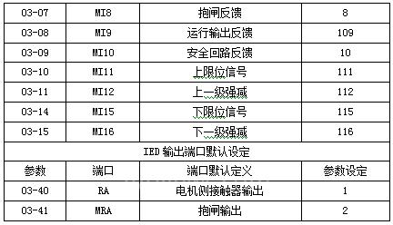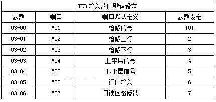 臺達IED電梯一體機的所有輸入、輸出端口功能都可通過參數(shù)任意設(shè)定,此項目設(shè)定情況如表2所示。其中,現(xiàn)場雙開門有2個門機獨立控制前后門。