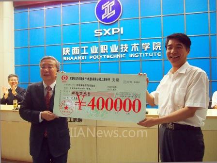 【立石會長代表歐姆龍向陜西工院捐贈40萬元助學(xué)金】