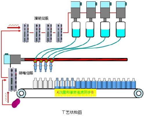 噴嘴伺服及灌裝伺服同步工藝的實(shí)現(xiàn):