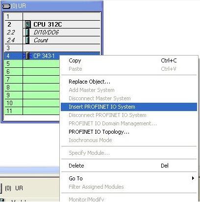 第3步,在CP343-1的右鍵中選擇“插入PROFINET IO系統(tǒng)”,如圖3-3所示: