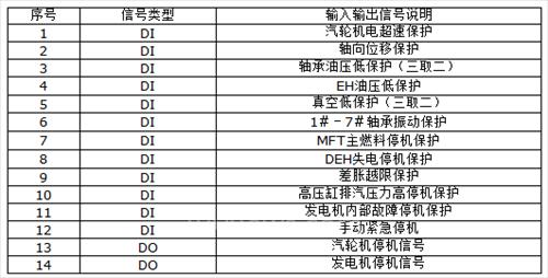 以300MW機(jī)組的ETS為列,輸入輸出信號(hào)清單如下: