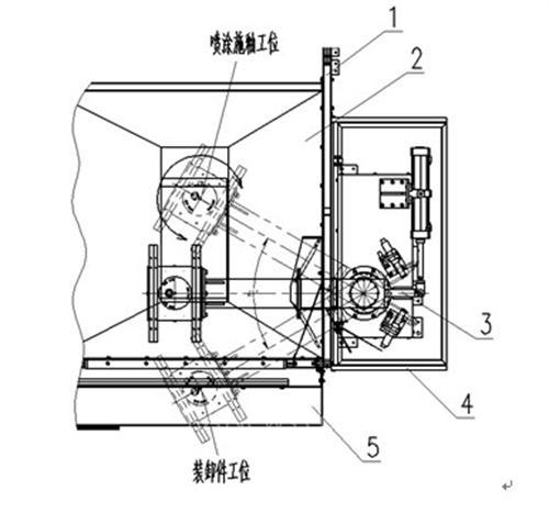 1工作間 2室內(nèi)收釉漏斗 3轉(zhuǎn)臂及轉(zhuǎn)臺