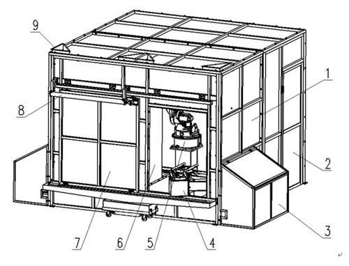 1工作間主體 2維護門 3轉(zhuǎn)臂護罩 4轉(zhuǎn)臂及轉(zhuǎn)臺