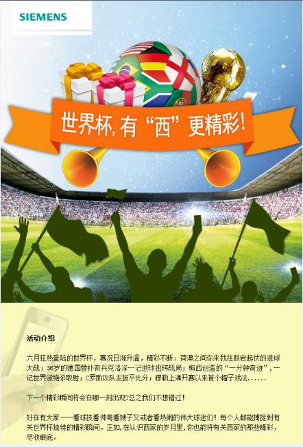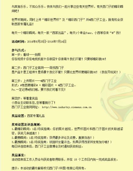 世界杯賽況日漸升溫,前有荷澳你來我往的進(jìn)球大戰(zhàn),后有梅西一記世界波絕殺助阿根廷取勝,驚心動魄中感受足球的魅力所在。下一個精彩瞬間在哪里?快來與我們一起分享吧!活動期間,只要發(fā)布世界杯以及西門子的精彩圖片,并@西門子工業(yè),就有機(jī)會獲得西家專屬禮品!活動規(guī)則及詳情: