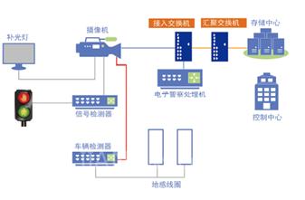 在車輛經(jīng)過信號燈的時候,利用地感線圈車輛監(jiān)測器感應(yīng)車輛的行駛狀況,觸發(fā)攝像機(jī)及時拍照,再把處理過高清視頻圖像通過千兆交換機(jī)傳輸至控制中心。ORing 的千兆交換機(jī)產(chǎn)品支持遠(yuǎn)距離光纖傳輸,千兆帶寬可以傳輸搞清視頻,并可以在惡劣的路面環(huán)境下使用。