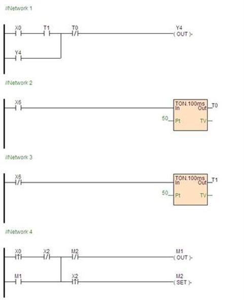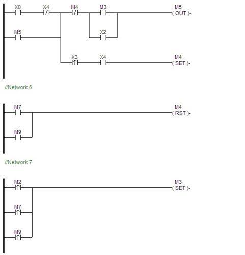 程序編制:根據(jù)設(shè)備工藝要求和電氣原理圖來設(shè)計(jì)PLC 程序。海為公司為了用戶更好的應(yīng)用PLC,還是做了大量的程序示例。海為的編輯軟件用著也挺好用,一下子就習(xí)慣了(附部分程序)。
