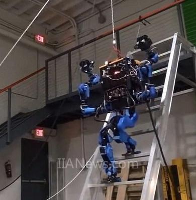 谷歌公司表示,下一步“沙夫特”將從機(jī)器人設(shè)計(jì)比賽中退出,轉(zhuǎn)向開發(fā)首款商業(yè)機(jī)器人。如圖,這款機(jī)器人完成了“軍事機(jī)器人-奧林匹克大賽”八項(xiàng)測(cè)試中的一項(xiàng),成功攀爬陡峭的梯子。