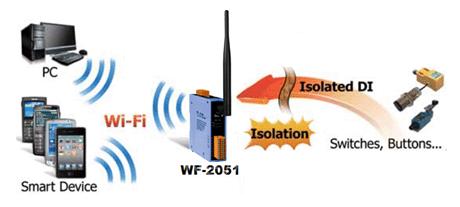WF-2051為WF-2000無(wú)線(xiàn)產(chǎn)品家族成員之一,其為具備16通道隔離數(shù)字量輸入(8通道含32位計(jì)數(shù)器)的無(wú)線(xiàn)I/O模塊。除此之外,WF-2051也符合IEEE 802.11 b/g的無(wú)線(xiàn)網(wǎng)絡(luò)標(biāo)準(zhǔn)。隨著網(wǎng)絡(luò)基礎(chǔ)設(shè)施的普及與移動(dòng)技術(shù)的進(jìn)步, WF-2051可輕易的融入無(wú)線(xiàn)網(wǎng)絡(luò)中,通過(guò)Modbus TCP/UDP通信協(xié)議與網(wǎng)絡(luò)加密的配置,用戶(hù)可輕易將WF-2051整合到任何SCADA 軟件,為用戶(hù)提供方便、安全的無(wú)線(xiàn)I/O解決方案。