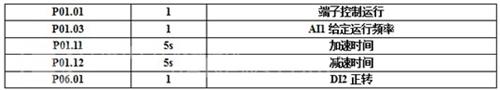 利用歐科變頻器多功能輸入端子DI2設(shè)置為正轉(zhuǎn),模擬量輸入端子AI1調(diào)節(jié)頻率,歐科變頻器獨有的低頻V/F曲線補償算法使低頻時輸出大力矩,變頻器過載能力為:200%的額定電流0.1s,150%的額定電流60s,另外電流限幅功能也能有效降低變頻器的故障報警輸出。