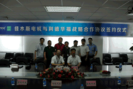 2014年6月27日,在第5會議室,利德華福與佳木斯電機(jī)股份有限公司簽署了戰(zhàn)略合作協(xié)議,協(xié)議實(shí)施后,利德華福將成為佳木斯電機(jī)成套事業(yè)部唯一指定配套商,并在市場方案、價格指導(dǎo)上為佳木斯電機(jī)給予必要的協(xié)助。佳木斯電機(jī)副總經(jīng)理崔劍先生和利德華福公司營銷系統(tǒng)總監(jiān)張韌先生分別代表佳木斯電機(jī)和利德華福簽署合作協(xié)議,并發(fā)表重要講話,高度評價雙方的合作。