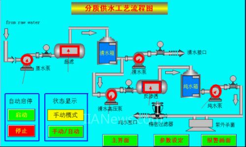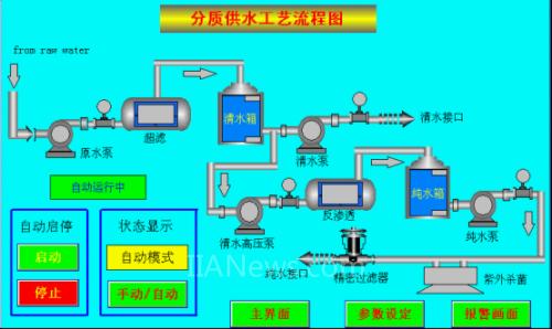 1、 清水箱低液位,原水泵啟動;高液位,原水泵停止;