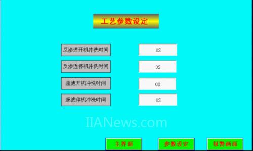 2、 參數(shù)設(shè)定: 超濾沖洗電磁閥、反滲透沖洗電磁閥的運行時間設(shè)定
