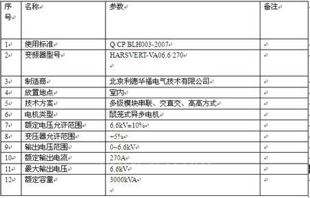 4.2 高壓變頻器參數(shù)