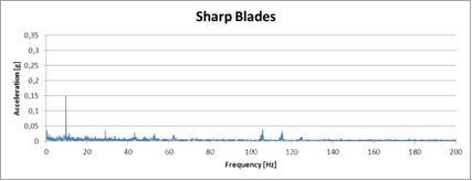 作為全球最知名的塑料機(jī)械制造商之一,Starlinger在其塑料循環(huán)系統(tǒng)recoSTAR里集成了B&R的預(yù)測(cè)性維護(hù)技術(shù),通過(guò)對(duì)裁切單元裁切刀的振動(dòng)測(cè)量,可以分析其刀的磨損狀態(tài),從而使得維護(hù)人員可以及時(shí)的制定何時(shí)去磨刀或更換刀具或調(diào)整安裝等,從下圖我們可以看出鋒利的刀和已經(jīng)使用鈍了的刀具在機(jī)械加速度原值上的變化,由此可以為維護(hù)人員提供維護(hù)的參考,從而避免刀的使用和保養(yǎng)處于最佳狀態(tài),既保護(hù)了刀具的壽命又避免了生產(chǎn)的停機(jī)和生產(chǎn)產(chǎn)品的質(zhì)量。