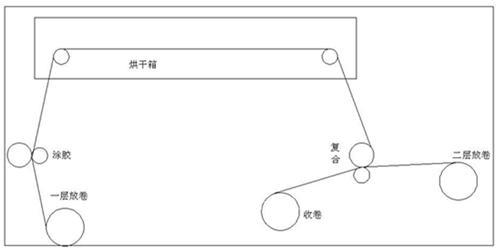 此復(fù)合機(jī)是處理塑料薄膜工藝中(如薄膜印刷)的一個(gè)重要設(shè)備,如下圖所示。本系統(tǒng)中,薄膜卷通過放卷架放卷,然后通過涂膠槽涂膠,進(jìn)入復(fù)合牽引輥后,在復(fù)合控制箱中進(jìn)行加熱處理,再與另外一層薄膜進(jìn)行復(fù)合,最后由收卷電機(jī)進(jìn)行收卷。