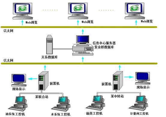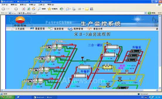 第三部分為Web發(fā)布,服務(wù)器將現(xiàn)場(chǎng)傳來(lái)的數(shù)據(jù),通過(guò)流程圖畫(huà)面,數(shù)據(jù)瀏覽畫(huà)面等形式展示出來(lái)并進(jìn)行Web發(fā)布。通過(guò)就解決了管理人員在生產(chǎn)管理中的弊端,通過(guò)Web發(fā)布,所有油田局域網(wǎng)中授權(quán)的用戶(hù),均可以通過(guò)瀏覽網(wǎng)頁(yè)的形式瀏覽到現(xiàn)場(chǎng)的生產(chǎn)數(shù)據(jù),這樣就真正的實(shí)現(xiàn)了數(shù)字化管理,可以坐在辦公室中指揮現(xiàn)場(chǎng)生產(chǎn)。