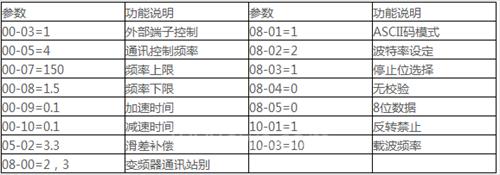 要求變頻器具有RS485通訊功能,可快速響應,外部端子控制啟停、點動,有段速功能,通訊控制主頻率和段速頻率,AC 380V輸入。