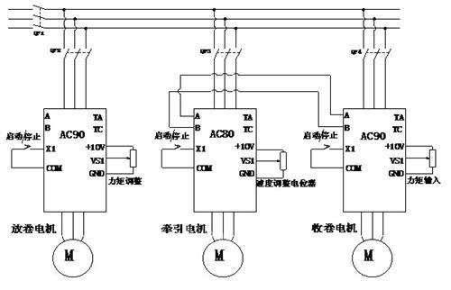 放卷、牽引變頻器的參數(shù)設(shè)置比較簡單,只需要按照接線圖把相關(guān)參數(shù)設(shè)置好就可以了。