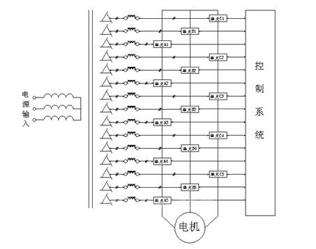 四象限高壓變頻器采用獨有三電平功率單元混聯(lián)型結(jié)構(gòu),屬于電壓源型、高-高式高壓變頻器,由變壓器柜、功率單元柜和控制柜三部分組成。變頻器直接6/10kV輸入,直接6/10kV輸出,不需要任何形式的升壓設(shè)備,可直接驅(qū)動普通高壓電機,無需降容使用。下圖為10kV四象限的整機拓撲原理圖: