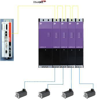 CoolDrive A8是國內(nèi)首家通過ETG一致性測試的產(chǎn)品,可以實現(xiàn)與 Beckhoff上位的EtherCAT總線完美兼容,能夠發(fā)揮EtherCAT任務(wù)的最佳性能。由于CoolDrive A8伺服驅(qū)動器的電流環(huán)、速度環(huán)和位置環(huán)的控制周期分別可達到62.5us、125us和250us,頻率響應(yīng)更是高達3KHz,可充分滿足高速并聯(lián)機器人高速響應(yīng)、高同步性的性能要求。