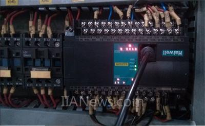 各類信號(hào)控制線接到電柜完畢后,將海為PLC安裝到機(jī)架上,海為PLC采用的是導(dǎo)軌式安裝,非常方便,直接卡入,接著就是開始細(xì)活,把信號(hào)控制線連接線到PLC的端子上面。