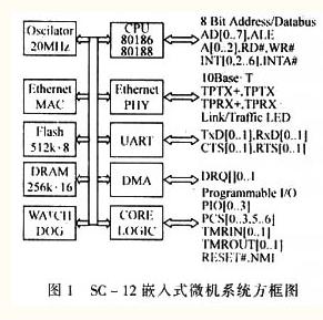 (1)控制模塊采用的嵌入式微機(jī)是德國Beck IPC公司生產(chǎn)的SC-12。如圖1所示,它的內(nèi)核采用固化了DOS系統(tǒng)的80186芯片,其資源如下: