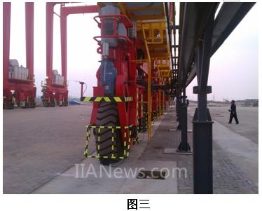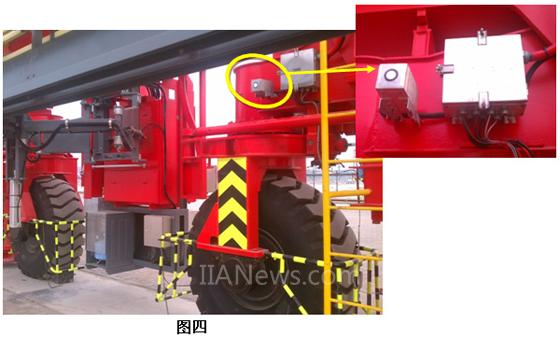 當輪胎吊運行時,模擬量輸出實時信號,當測量值達到PLC設(shè)定的最小值時,說明輪胎吊已經(jīng)向外跑偏,此時糾偏系統(tǒng)開始啟動,輪胎往內(nèi)側(cè)偏轉(zhuǎn)糾正。當測量值小于設(shè)定的最小值,糾偏系統(tǒng)停止。同理當測量值達到PLC設(shè)定的最大值時,說明輪胎吊已經(jīng)向里跑偏,糾偏系統(tǒng)開始啟動,輪胎往外側(cè)偏轉(zhuǎn)糾正。一旦測量值達到開關(guān)量的設(shè)定值,說明輪胎吊已經(jīng)處于警戒位置,傳感器開關(guān)量輸出信號,繼電器斷開、設(shè)備停車。