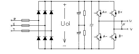 移相變壓器的每級副邊繞組的輸出作為每個功率模塊的三相輸入。功率模塊是整臺變頻器實現(xiàn)變壓變頻輸出的基本單元,整臺變頻器的變壓變頻功能是通過單個功率模塊實現(xiàn)的,每個功率模塊都相當于一臺交-直-交電壓型單相低壓變頻器。