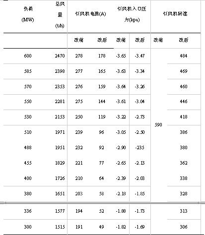 在不同工況下,引風(fēng)機系統(tǒng)技改前、后實際運行參數(shù)見表4: