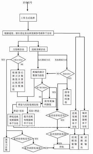 兩臺變頻器分別控制切刀與,送紙電機的速度來實現(xiàn)不同的包裝速度與袋長的需求。