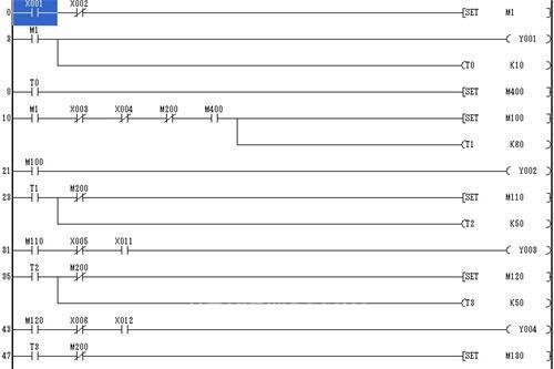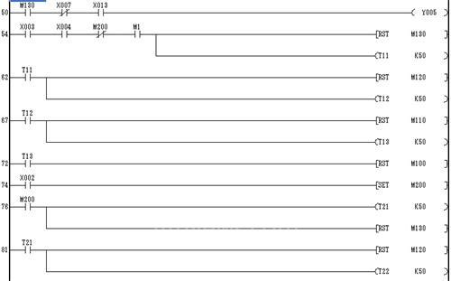 工程軟件是在三菱的PLC編程環(huán)境下結(jié)合工藝要求,用步進(jìn)階梯指令編程,如下示: