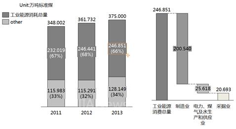 國的能耗(圖2),不難發(fā)現(xiàn),從2011到2013三年中,工業(yè)能耗占據(jù)了整體能耗的60%以上,尤其是2012年,工業(yè)能耗占據(jù)整體能耗的68%??梢哉f,節(jié)能,首當(dāng)其沖的就是工業(yè)。從另一方面講,從成本方面考慮,在日益激烈的市場競爭下,如何控制成本,如何降低能耗,也是工業(yè)企業(yè)主所關(guān)心的重要話題。于國之公器,于民之私利,如何幫助工業(yè)企業(yè)降低能耗,減少污染,都是造就人環(huán)和諧,經(jīng)濟可持續(xù)的關(guān)鍵所在。