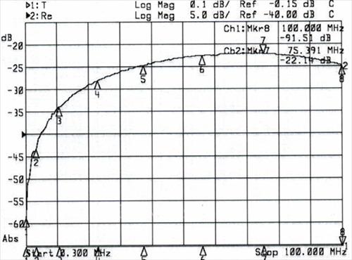 D-LAN-CAT.5系列產品不僅能夠提供全模防護,而且支持POE供電防護技術。不單單在雷電浪涌來臨時具有很好的防護能力,并且在上海防雷測試中心以極佳的性能參數(shù)通過了網絡測試。在測試中,產品原件的分布電容為2.87pF,遠小于標稱的5pF;近端串擾為46.38dB,大于標稱的40dB;回波損耗為23.1dB,大于標稱的20dB;最大插入損耗為0.32dB,小于標稱的0.5dB,根據GB/T 18802.21規(guī)定,插入損耗預定的傳輸應用頻率范圍為1.0dB,故此插入損耗遠小于標準規(guī)定值,對信號的衰減可以忽略不計,具體數(shù)值見圖。