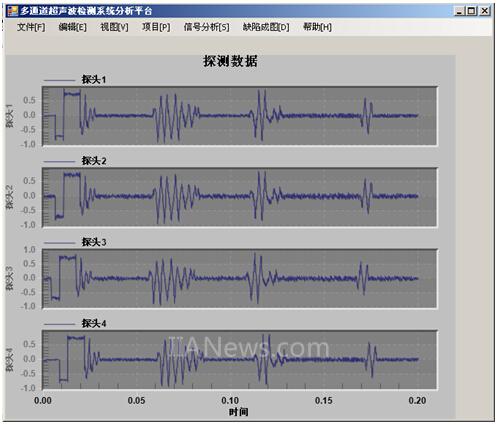 根據(jù)要求,采用凌華科技公司的PCI-9846數(shù)字化儀為應(yīng)用核心,設(shè)計(jì)了多通道的超聲波檢測系統(tǒng),系統(tǒng)通過計(jì)算機(jī)進(jìn)行控制,使用USB接口通過單片機(jī)統(tǒng)一進(jìn)行調(diào)度,將反射的超聲波信號經(jīng)過處理后,利用數(shù)字化儀進(jìn)行數(shù)據(jù)變換,并設(shè)計(jì)了軟件系統(tǒng)進(jìn)行數(shù)據(jù)的顯示和分析。試驗(yàn)結(jié)果表明,該系統(tǒng)具有探測精度高、分析功能強(qiáng)、工作穩(wěn)定可靠等優(yōu)點(diǎn),可以廣泛地應(yīng)用在工業(yè)自動(dòng)化檢測領(lǐng)域。