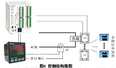 本文中,機(jī)型采用紅外加熱,溫度均勻、效率高。從PLC直接作PID運(yùn)算提升到溫度專(zhuān)用控制器,DT3為溫度控制核心,減輕PLC計(jì)算量,提高了加熱關(guān)鍵工序的控制效果。利用DT3配置的電流檢測(cè)模塊,紅外加熱片的日常維護(hù)檢測(cè)極為方便,提高了工作效率。