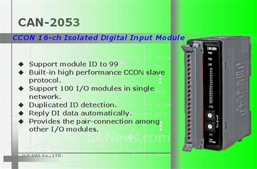關(guān)于泓格公司提供的CAN-2053模塊,用戶能使用CCON通訊協(xié)議讀取模塊的數(shù)字量輸入(DI)的狀態(tài)。CAN-2053模塊擁有16通道隔離型DI輸入,能被應(yīng)用在不同架構(gòu)上,例如大樓自動化、工廠自動化、機(jī)械自動化或采集分布式數(shù)據(jù)等架構(gòu)。藉由泓格公司建立的CCON master能讓使用者依需求快速地建立一個CCON的網(wǎng)絡(luò)架構(gòu)。
