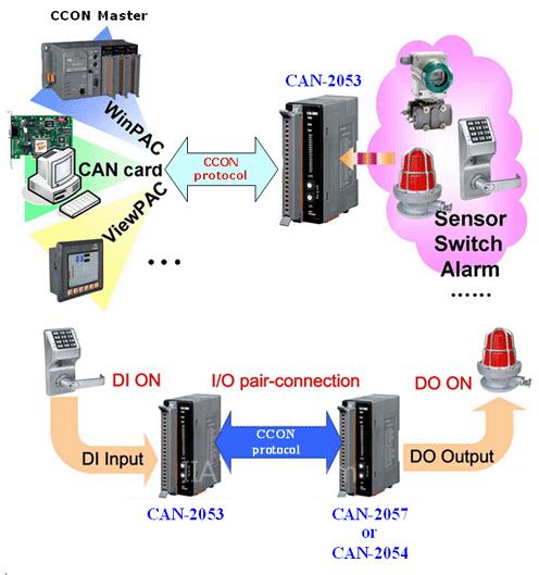 CCON協(xié)議是由泓格科技(ICP DAS)基于CAN bus網(wǎng)絡(luò)所發(fā)展的一組應(yīng)用層協(xié)議,其能簡單且有效地應(yīng)用在工業(yè)自動化。因建立在CAN bus網(wǎng)絡(luò)之上,CCON協(xié)議能提供多種安全且強(qiáng)大的通訊機(jī)制,例如:仲裁、錯誤檢測、錯誤修正等。除此之外,CCON能快速、簡單地被使用于建立一CAN網(wǎng)絡(luò)。CCON模塊能以固定的時間自動回傳實時I/O的信息給主端控制器,換句話說,主端控制器能在很短的時間內(nèi)獲取所有遠(yuǎn)程模塊I/O的信息,因此當(dāng)有大量的遠(yuǎn)程I/O的信息時,CCON模塊能更加有效地處理。