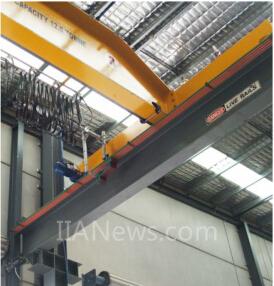 圖2:在橫梁上運(yùn)行的22米寬的橋式起重機(jī)橫跨了整個(gè)工廠,這三臺(tái)起重機(jī)的速度和起升時(shí)間均同步