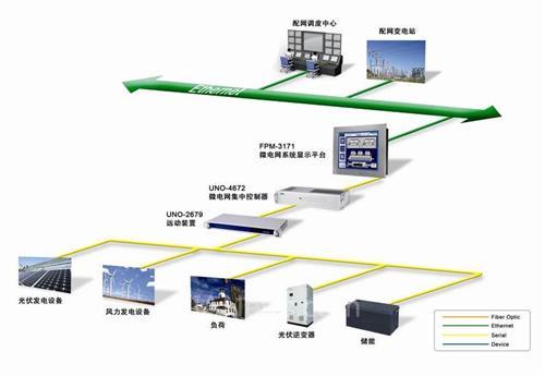 由于環(huán)境保護和能源枯竭的雙重壓力,迫使我們大力發(fā)展清潔的可再生能源。高效分布式能源工業(yè)(熱電聯(lián)供)的發(fā)展?jié)摿屠婵臻g巨大。提高供電可靠性和供電質(zhì)量的要求以及遠距離輸電帶來的種種約束都在推動著在靠近負荷中心設(shè)立相應(yīng)電源。通過研華微電網(wǎng)控制器可以實現(xiàn)對整個電網(wǎng)的集中控制,不需要分布式的就地控制器,而僅采用常規(guī)的量測裝置,量測裝置與就地控制器之間采用快速通訊通道。采用分布式電源和負荷的就地控制器實現(xiàn)微電網(wǎng)暫態(tài)控制,微電網(wǎng)集中能量管理系統(tǒng)實現(xiàn)穩(wěn)態(tài)安全、經(jīng)濟運行分析。微電網(wǎng)集中能量管理系統(tǒng)與就地控制器采用弱通訊連接。