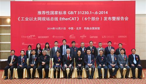 2014年10月21日,于北京釣魚臺(tái)國(guó)賓館,ITEI所長(zhǎng)歐陽(yáng)勁松教授主持了官方發(fā)布會(huì),來(lái)自多個(gè)領(lǐng)域的眾多專家齊聚一堂見(jiàn)證這一里程碑事件。中國(guó)國(guó)家標(biāo)準(zhǔn)化管理委員會(huì)孫維博士宣布EtherCAT成為GB/T 31230中國(guó)推薦性國(guó)家標(biāo)準(zhǔn)。