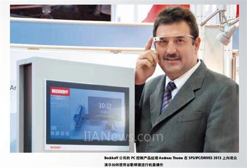 去年在德國紐倫堡舉辦的“2013 年德國紐倫堡工業(yè)自動化及元件展覽會(SPS/IPC/DRIVES 2013)上,Beckhoff 展出了通過專注于谷歌眼鏡的技術研究開發(fā)而成的針對機械操作的最新解決方案。有了具有上網(wǎng)功能的谷歌眼鏡,狀態(tài)或對話消息可以通過一個頭戴式顯示器直接投射到人眼中。在線信息和通信也可以用這種創(chuàng)新的設備實現(xiàn),且錯誤信息可以使用觸摸板進行確認。Beckhoff 公司的 PC 控制產品經(jīng)理 Andreas Thome 堅定地認為,谷歌眼鏡是互聯(lián)網(wǎng)和自動化技術相融合推動工業(yè) 4.0 發(fā)展的最突出的例子。