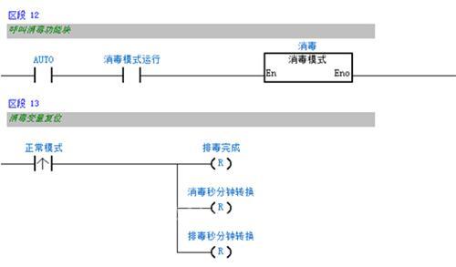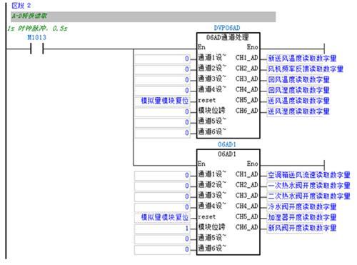 PLC控制程序采用臺達(dá)ISPSoft軟件編輯,將控制程序分為若干功能塊Function Block(簡稱FB),包括季節(jié)模式FB、消毒模式FB、PID運(yùn)算FB、模擬量處理FB等